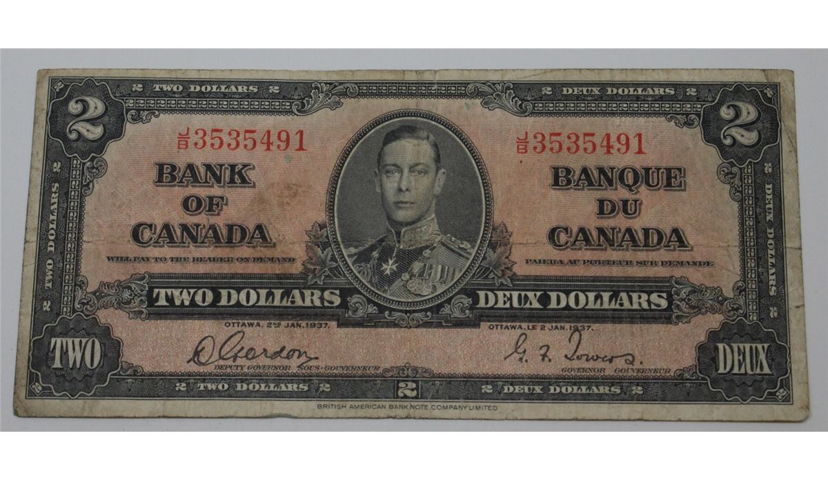 1937 CANADA $2 DOLLAR BILL