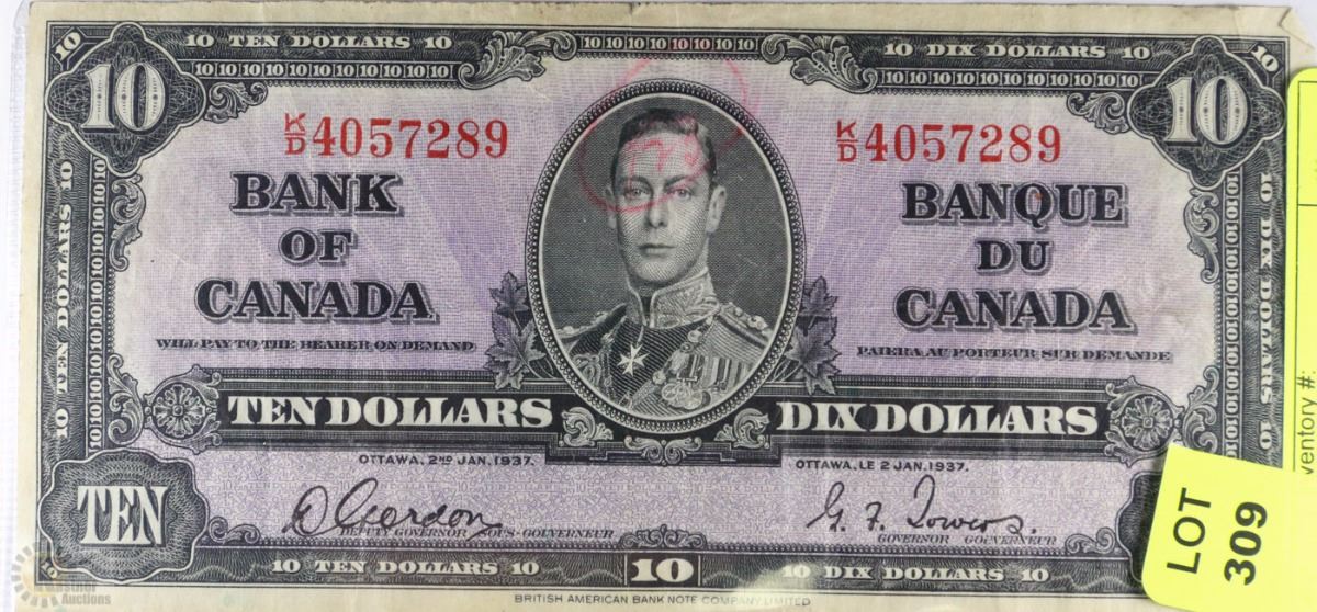 1937 CANADIAN TEN DOLLAR BANKNOTE