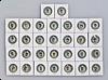 Full set of 1938 "Our National Game" pins, each is a 7/8" diameter metal disk with metal tab, player image printed in blue against pale yellow background. Includes Ott, Gehrig, McCarthy, Greenberg, DiMaggio, Dean, Ruffing, Gomez, Hartnett and others. Average VG-EX condition with some wear and minor rust on the fronts, the backs are generally clean.