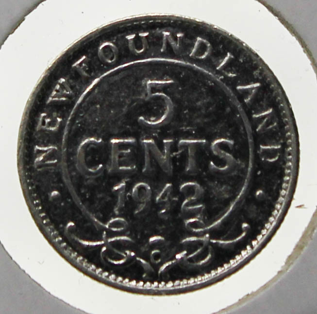 1942-C NEWFOUNDLAND SILVER 5 CENT COIN
