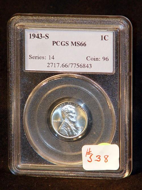 1943-S LINCOLN STEEL CENT PCGS CERTIFIED MS66