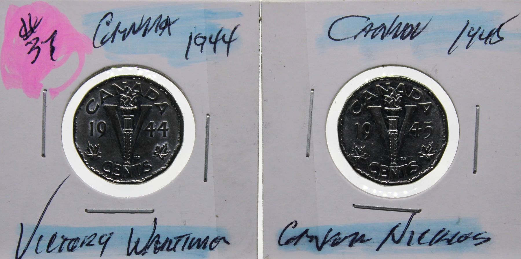1944-45 VICTORY WARTIME CANADIAN 5 CENT COINS