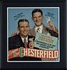 1946 Framed Chesterfield Bill Dickey & Mel Ott Cardboard Advertising Sign
