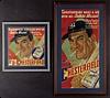 Pair of 1948 cardboard advertising signs for Chesterfield cigarettes, featuring William Bendix in the film "The Babe Ruth Story". Matted and framed to 26" x 27" and 29" x 51-1/2", both appear to be in VG condition with some creasing and staining.