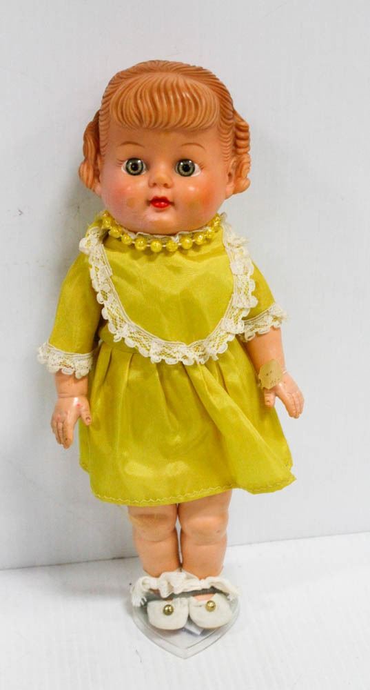 1950'S CAMPBELL'S SOUP RUBBER DOLL IN YELLOW DRESS