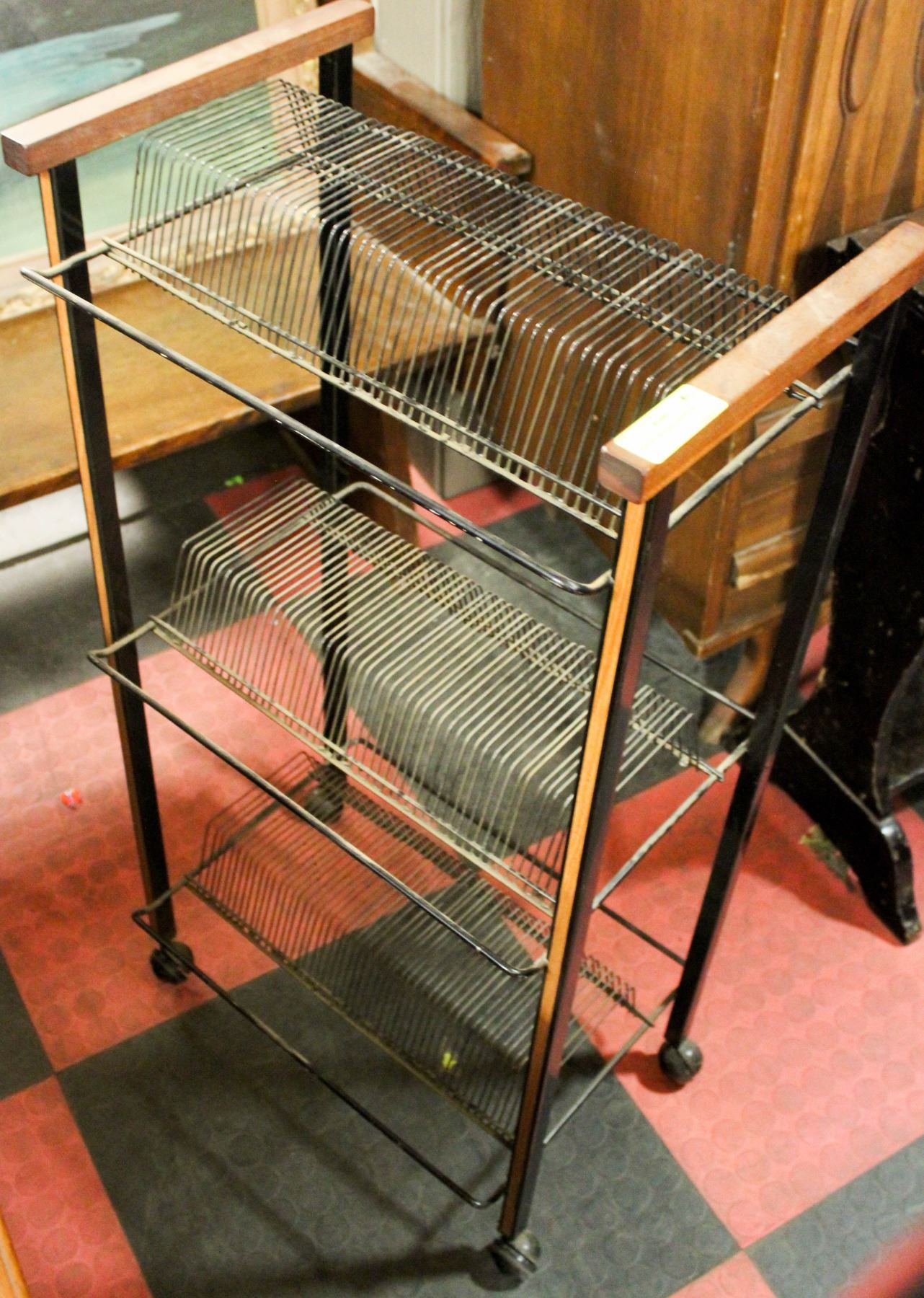 1950S DOUBLE RECORD RACK 37 INCH TALL