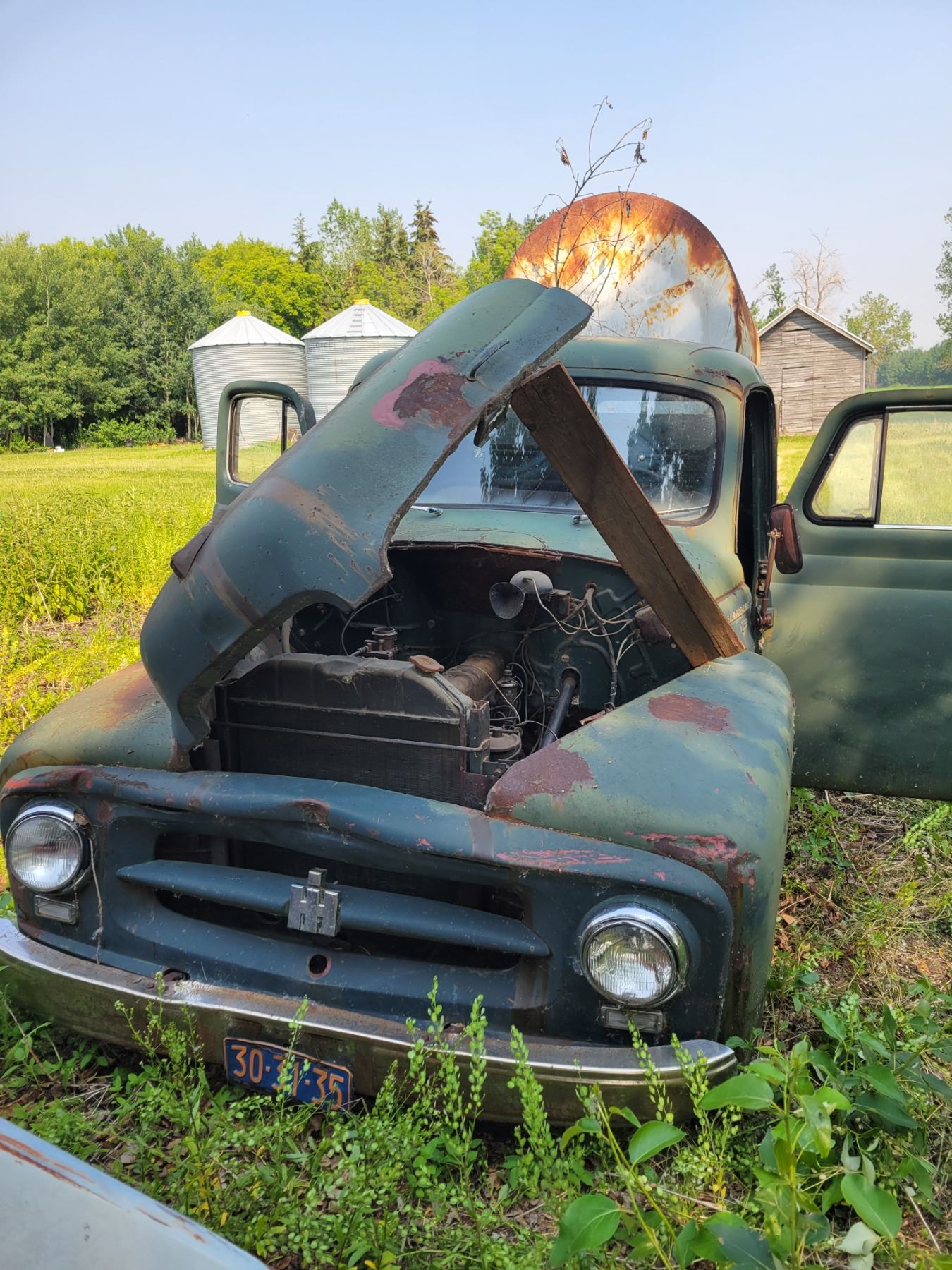 1950s Old International truck, Model SD-220 c/w motor and tran, SN.14768C, not running. Remove within 60 Days. , Located 571052 RR 185, North of Lamont, PH Nestor (780) 896-2177