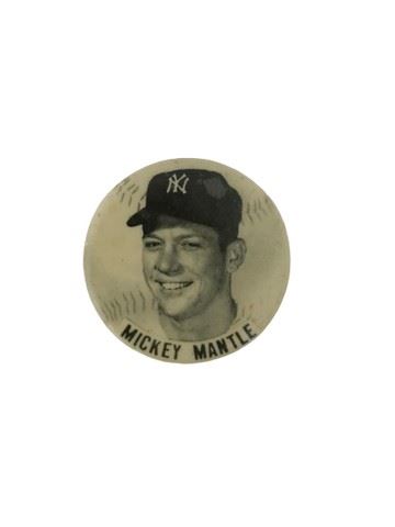 1950s rare Mickey Mantle pin (2"). Excellent condition with one worn spot on the top of his hat.