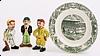 10" white and green commemorative plate for the 1951 50th Anniversary of the "National Association" (Minor Leagues) and three 6" ceramic baseball figures including an umpire, player and manager of unlisted manufacture. All items are EXMT with no chips and only very minor paint flaking.