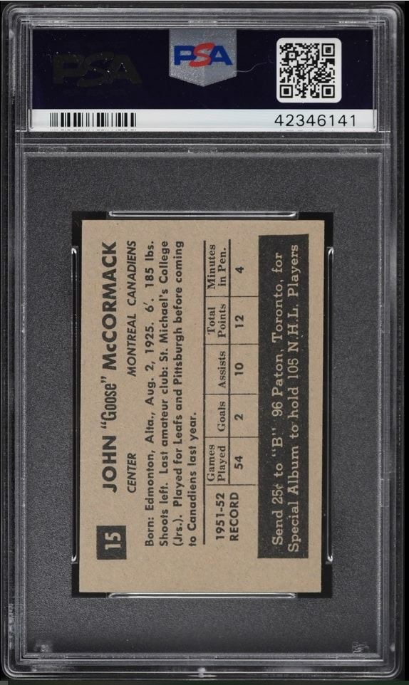 "Goose" McCormack rookie card in low pop territory. Graded 6 EX-MT by PSA!