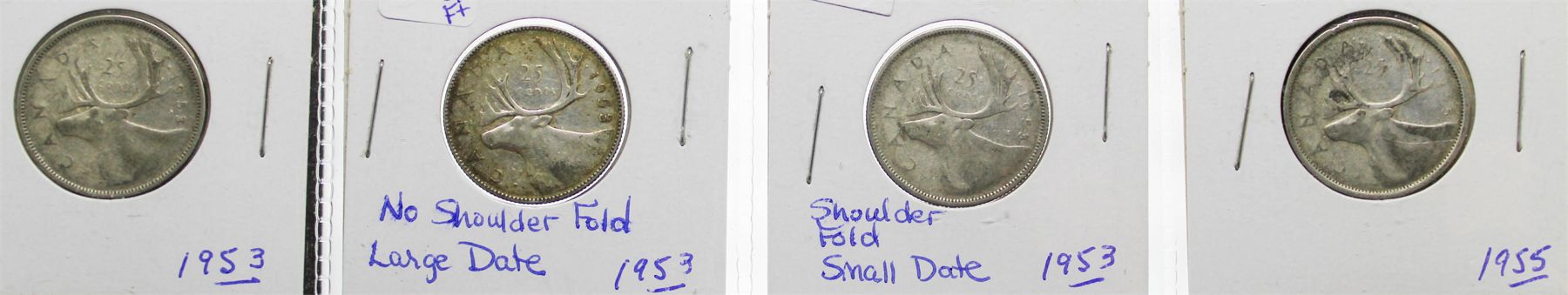 1953, 1953, 1953, 1955 SILVER 25 CENT COINS