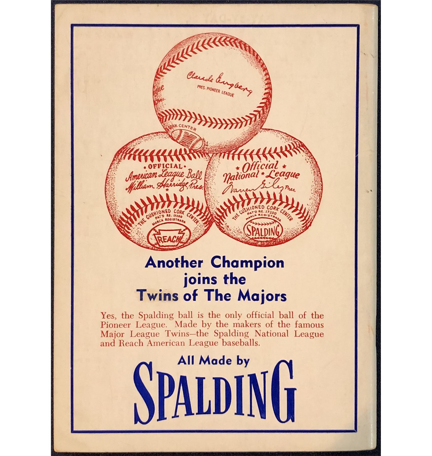1953 PIONEER LEAGUE LEAGUE RECORD BOOK