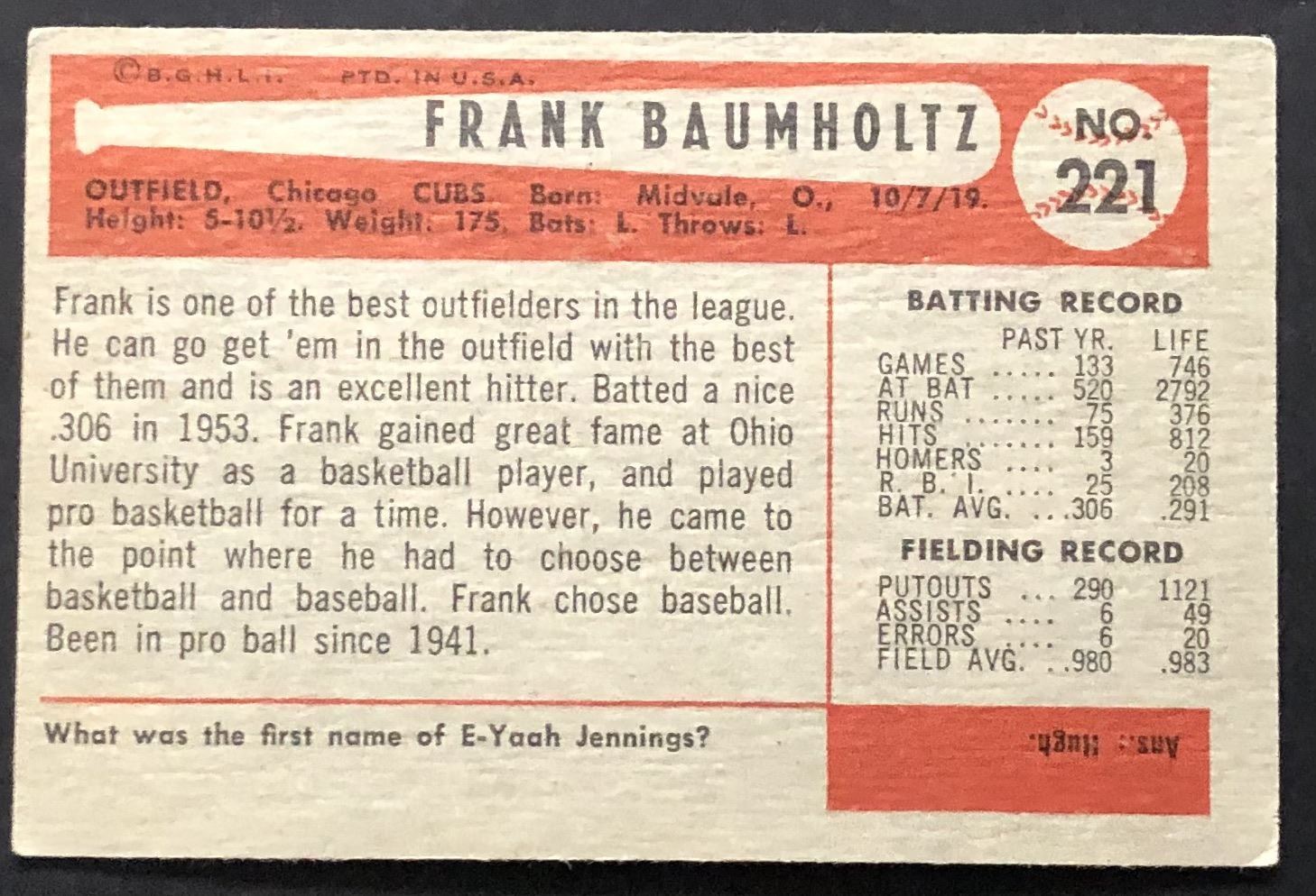 Card #221 baseball, MLB, hall of fame, vintage, OPC