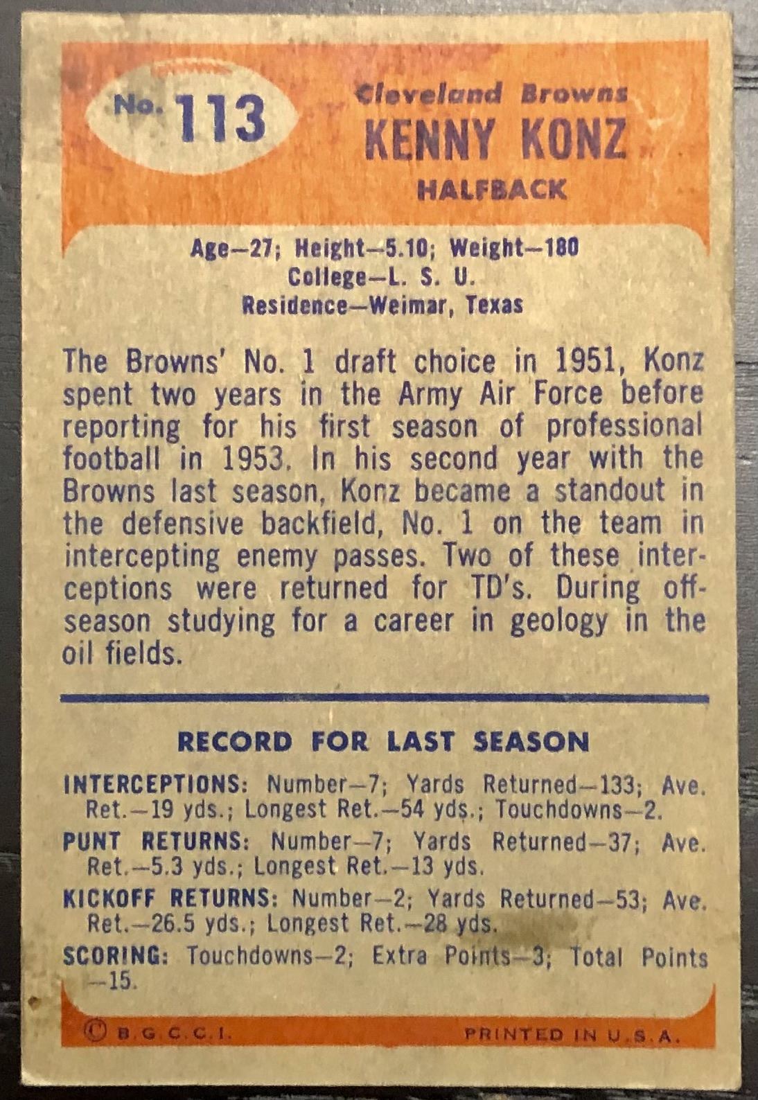 Card #113 vintage, NFL, football