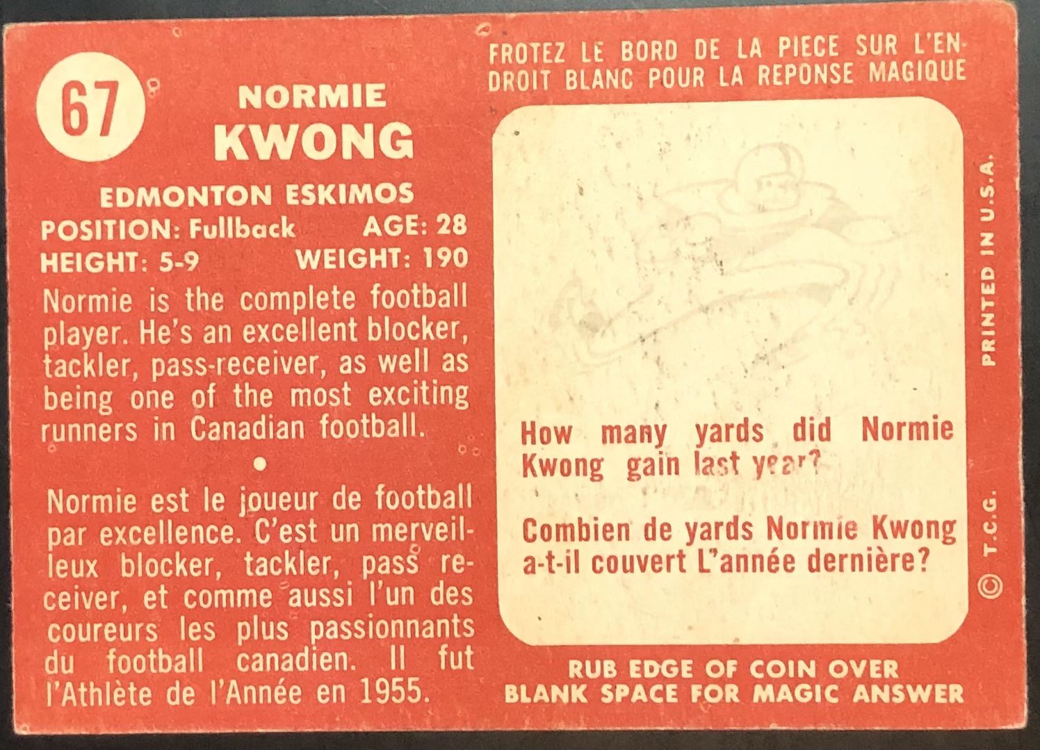 Card #67 vintage, CFL, football, OPC, hall of fame