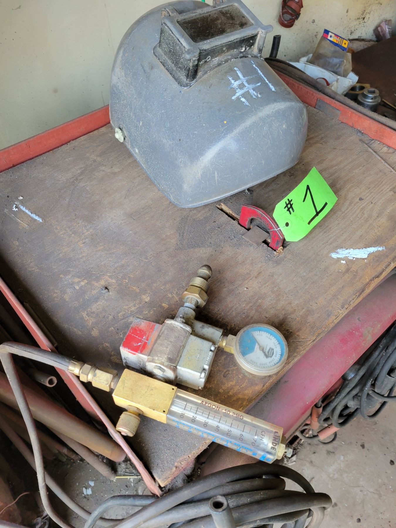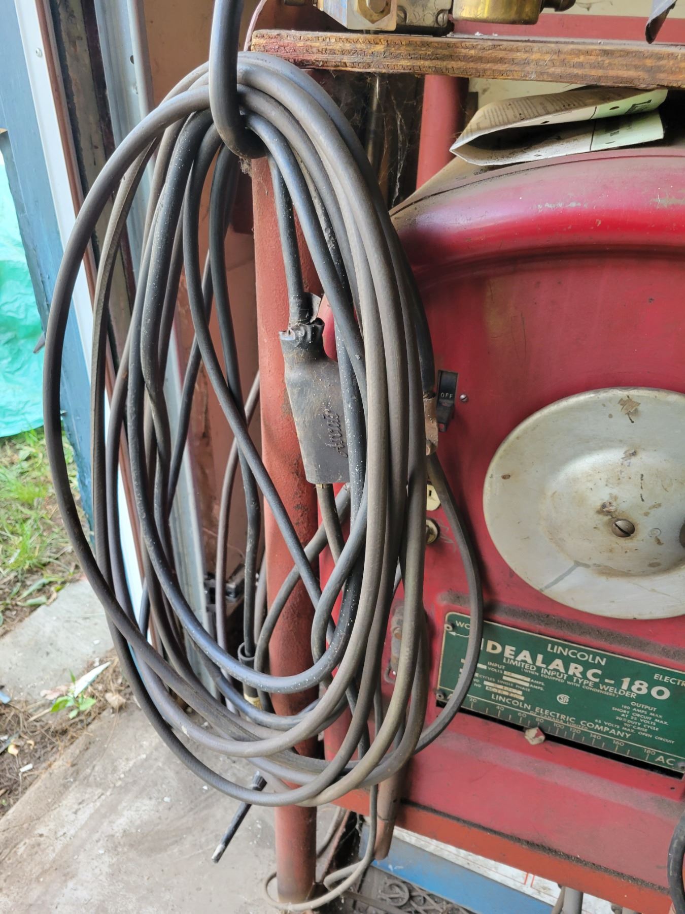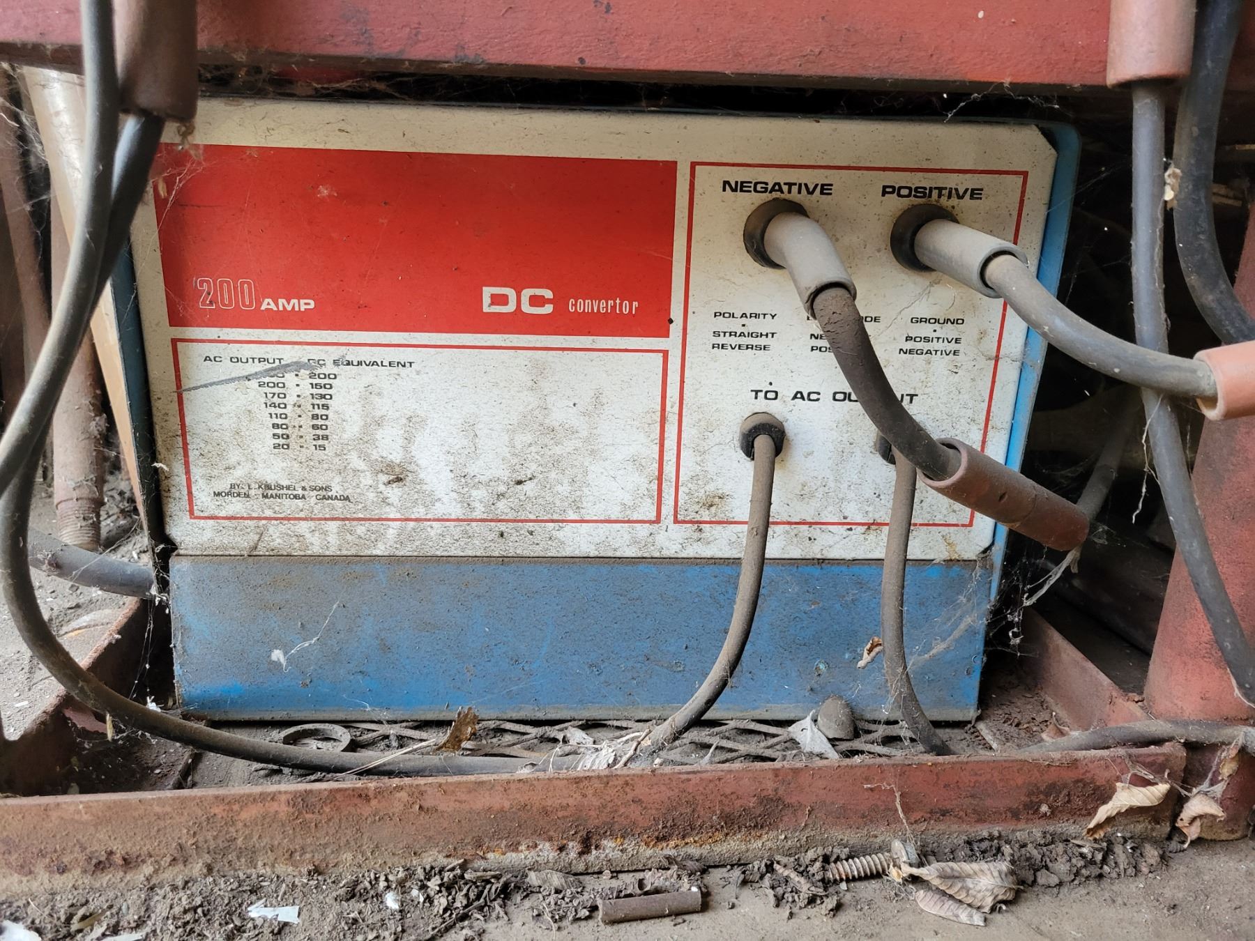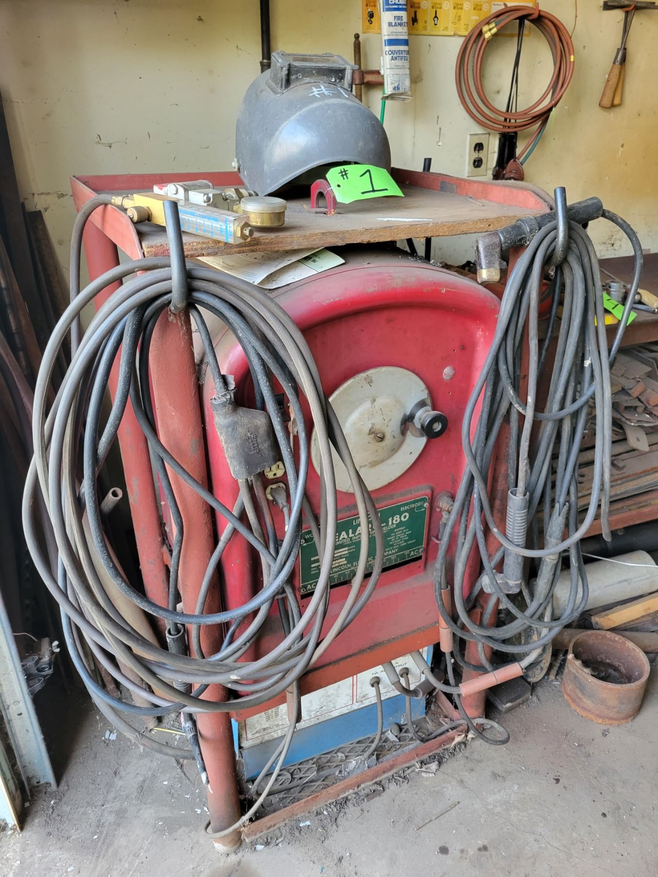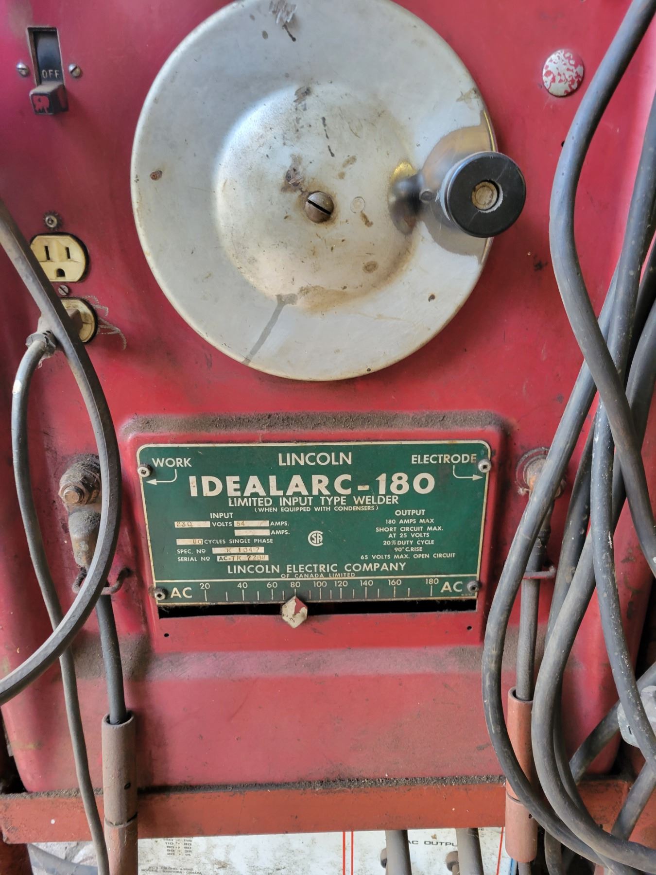 1959 Ideal Arc Welder, 180 amp, 220V, c/w 1980 converter, cables & welding helmet