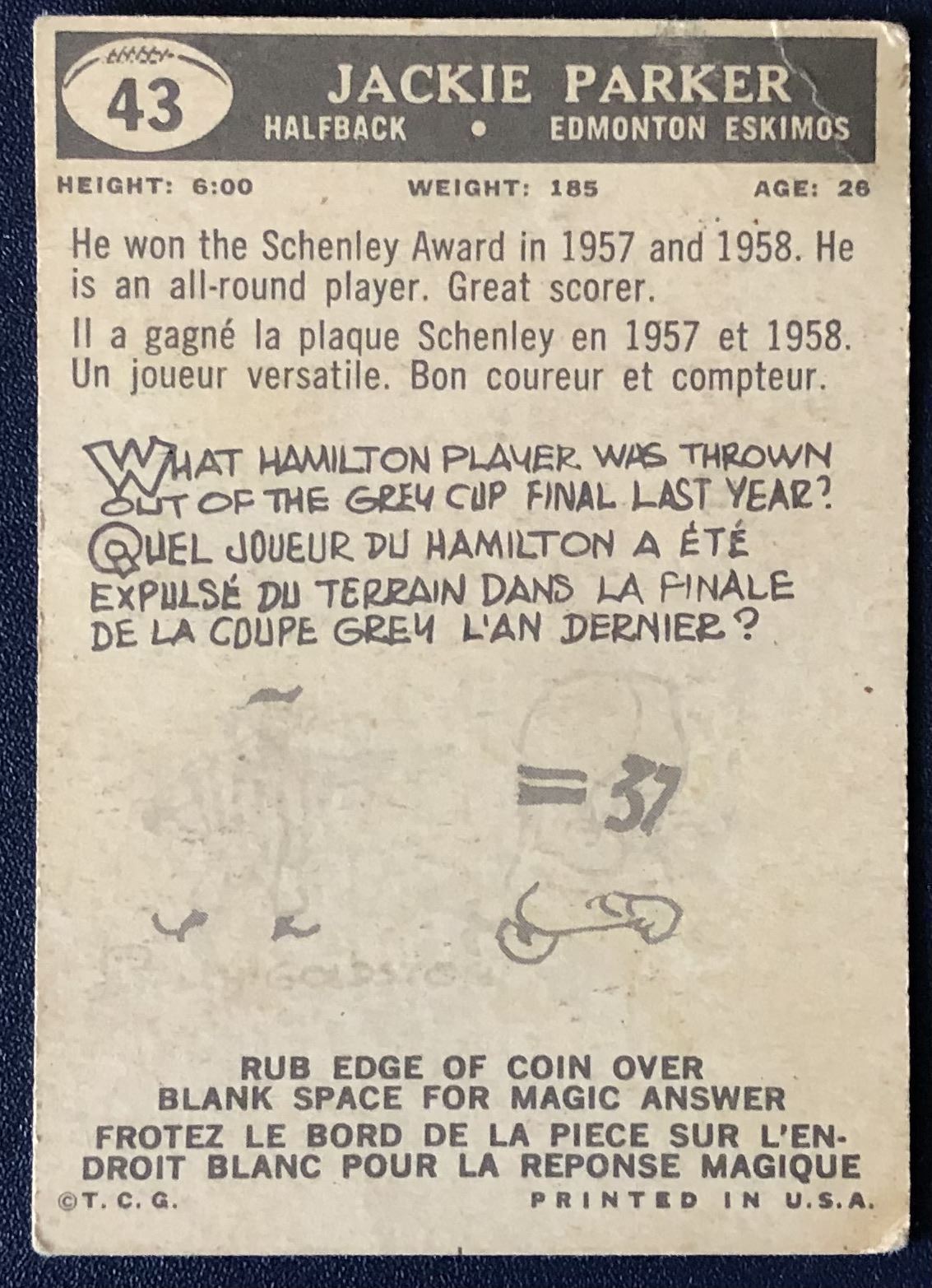 Card #43 crease top left corner CFL, football, vintage, hall of fame