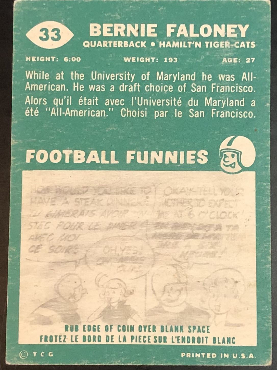 Card #33 vintage, CFL, football, OPC, hall of fame