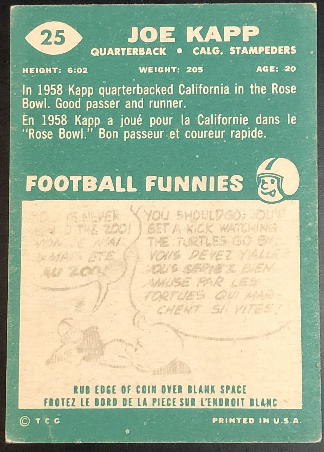 Card #25 vintage, CFL, football, OPC, hall of fame, rookie