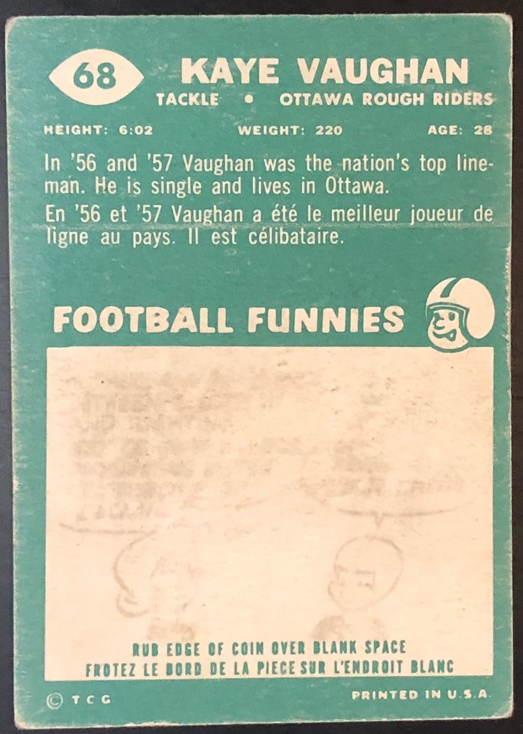 Card #68 CFL, football, vintage, hall of fame