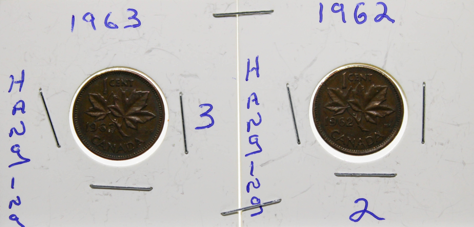 1962-63 CANADIAN HANGING 3 & HANGING 2 PENNIES