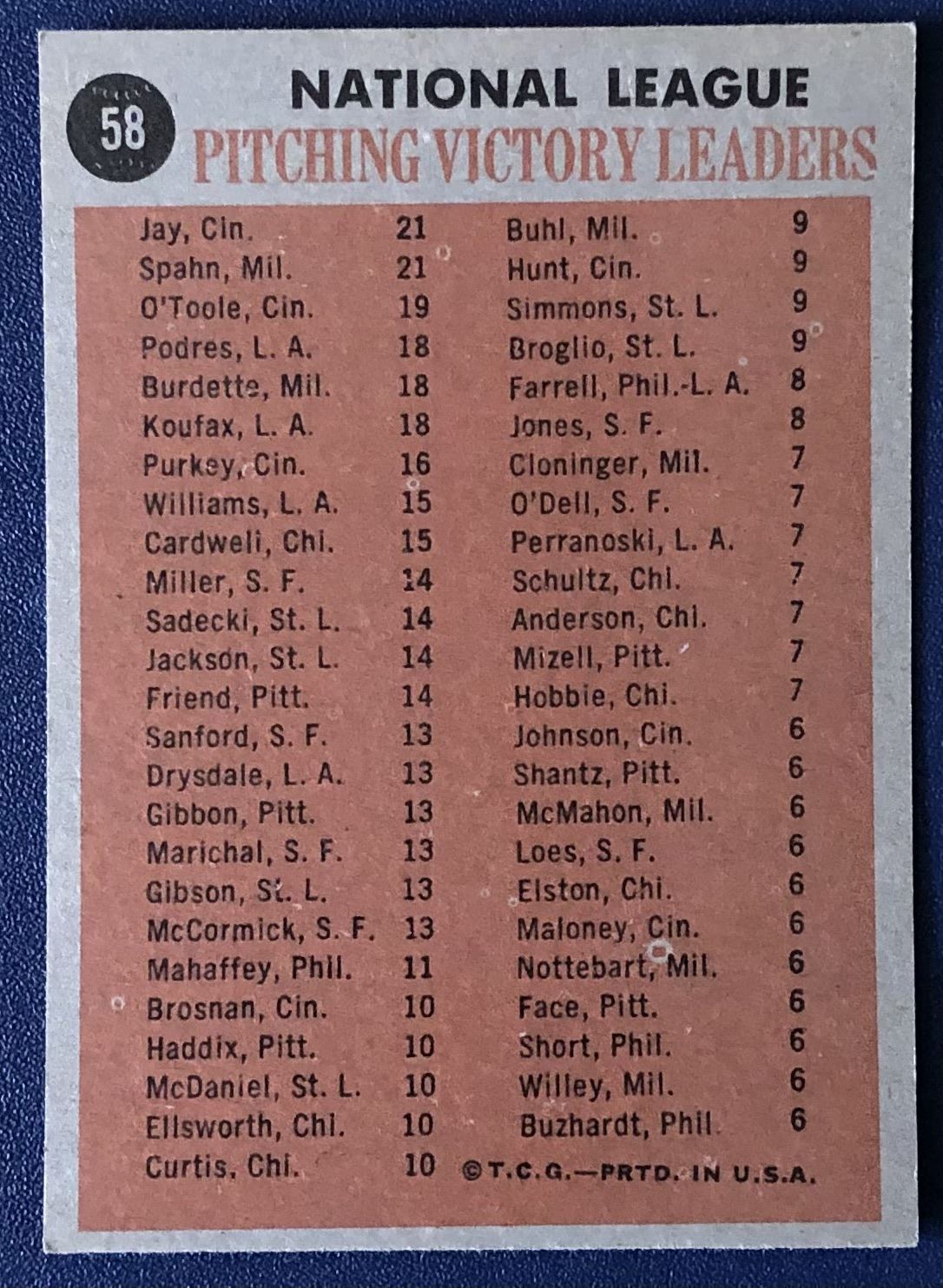 1962 TOPPS WARREN SPAHN (HOF) LL