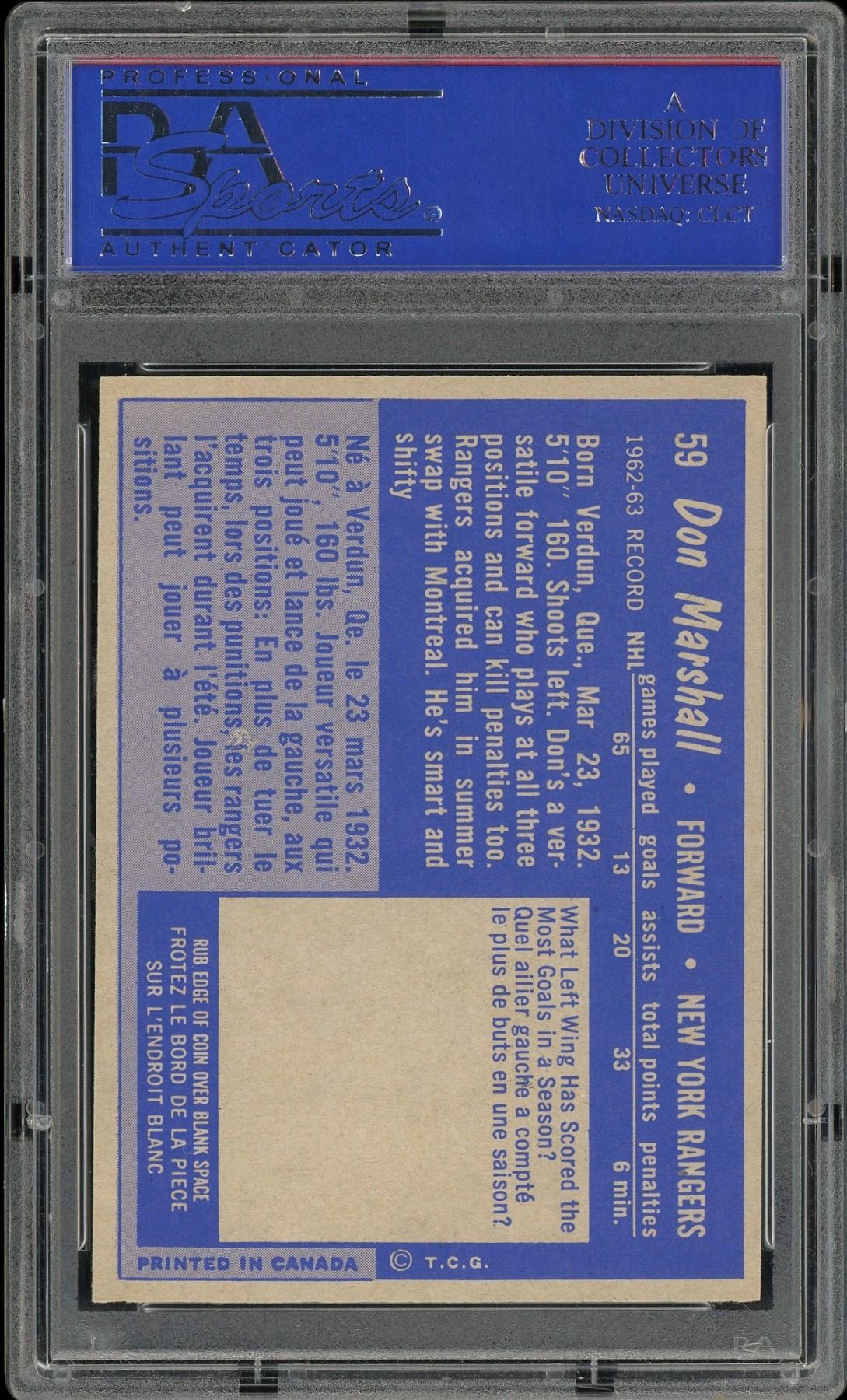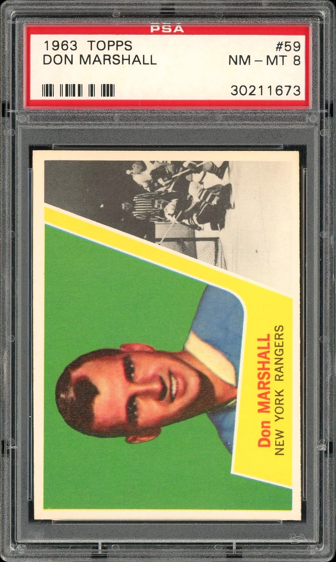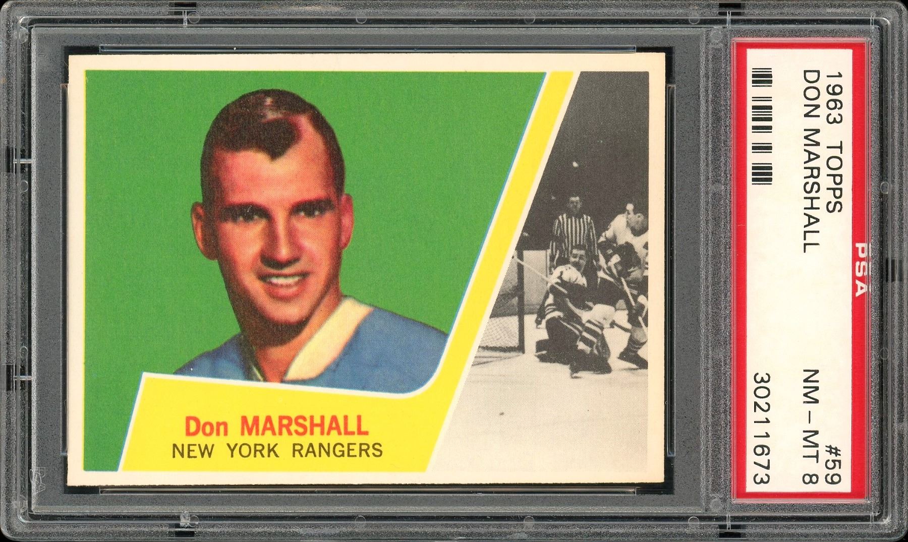 Marshall was a solid pro who lasted 19 seasons thanks to a top shelf two-way game. He won five straight Stanley Cups with Montreal and played in seven all-star games. Nice high-grade PSA 8 NM-MT offered here.