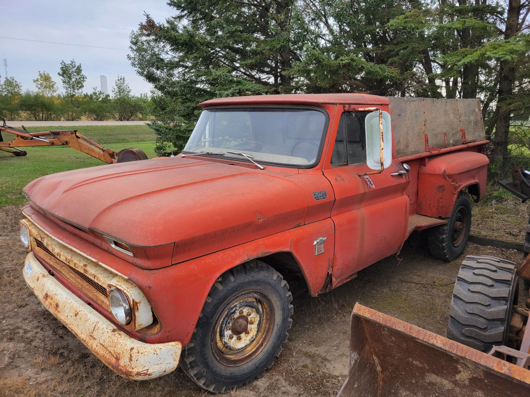 1964 Chev 1-ton, step side, 4spd, 6 cyl, c/w hoist, showing 80,645 km, runs, SN. 1C8601600092B