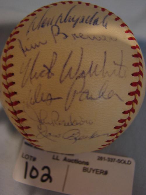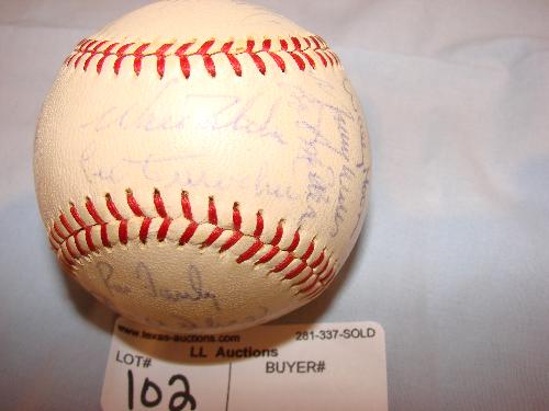 64 Dodgers autographed ball,24 signatures,w/PSA/DNA,inclds:Alston,Durocher, Drysdale,Koufax