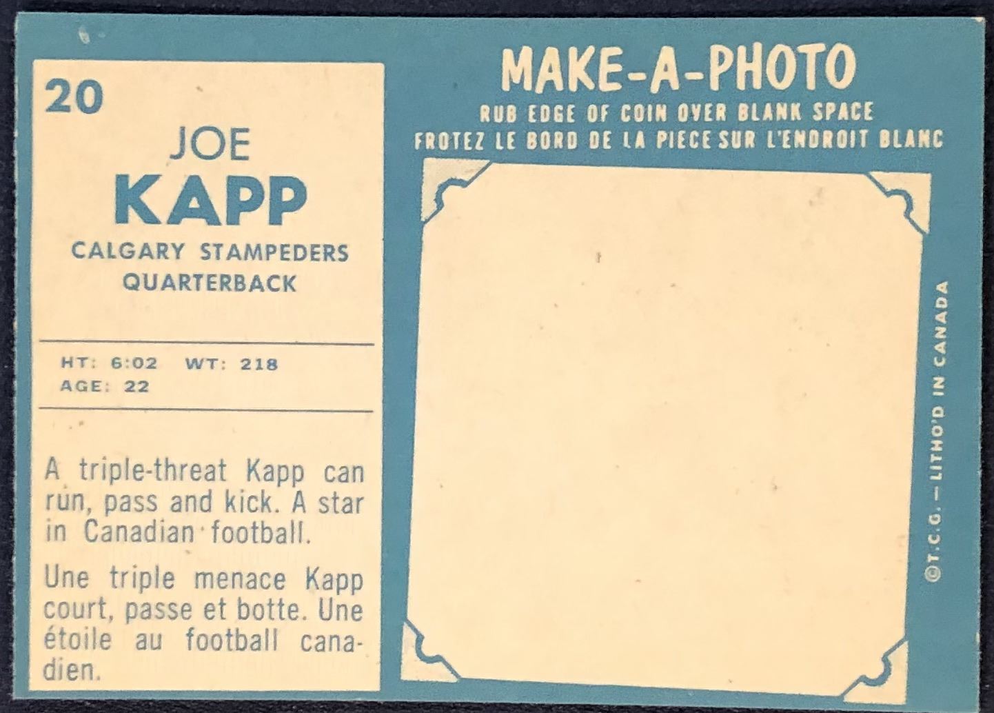 Card #20 vintage, CFL, OPC, football, hall of fame