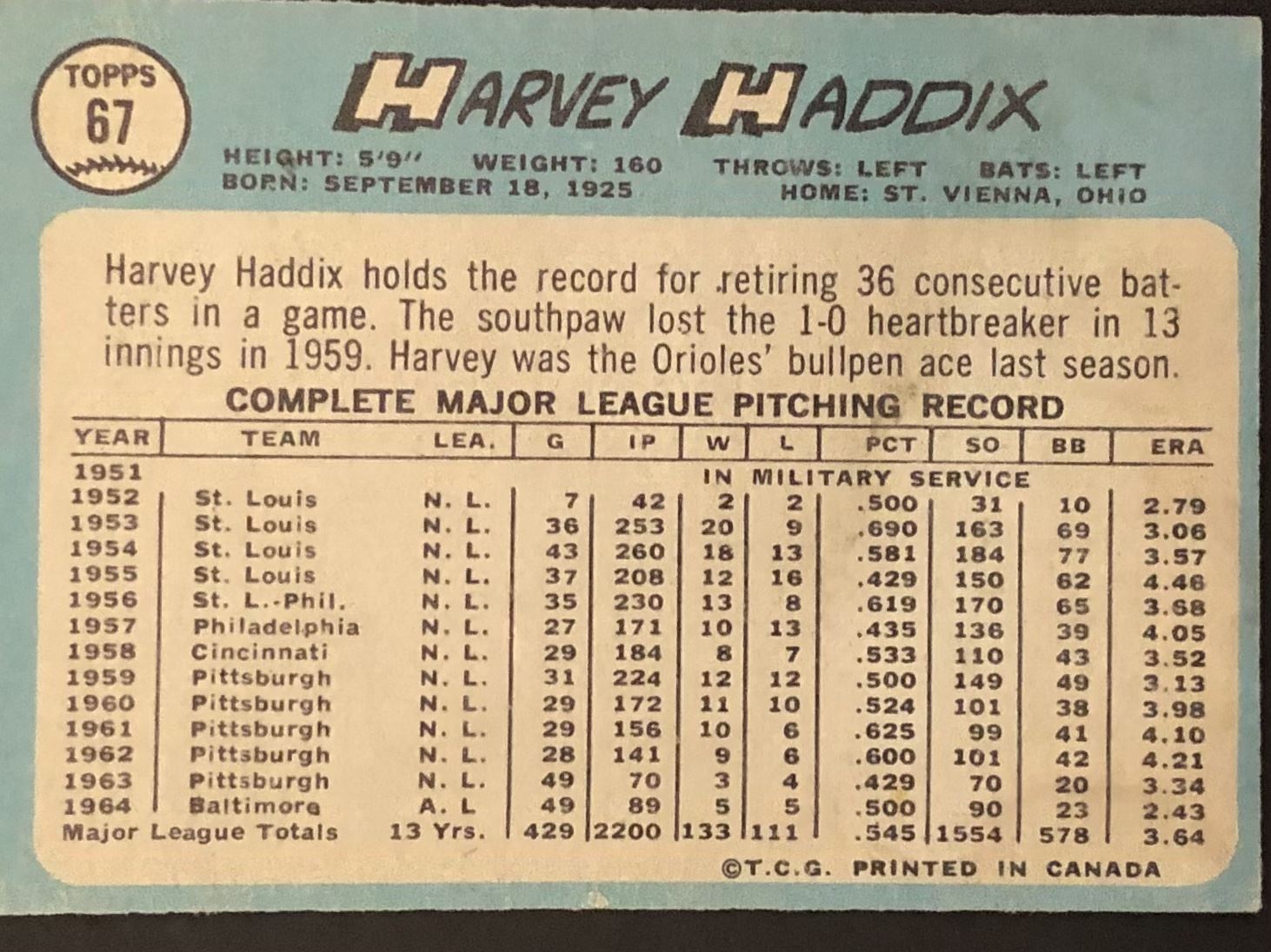 Card #67 OPC, baseball, vintage