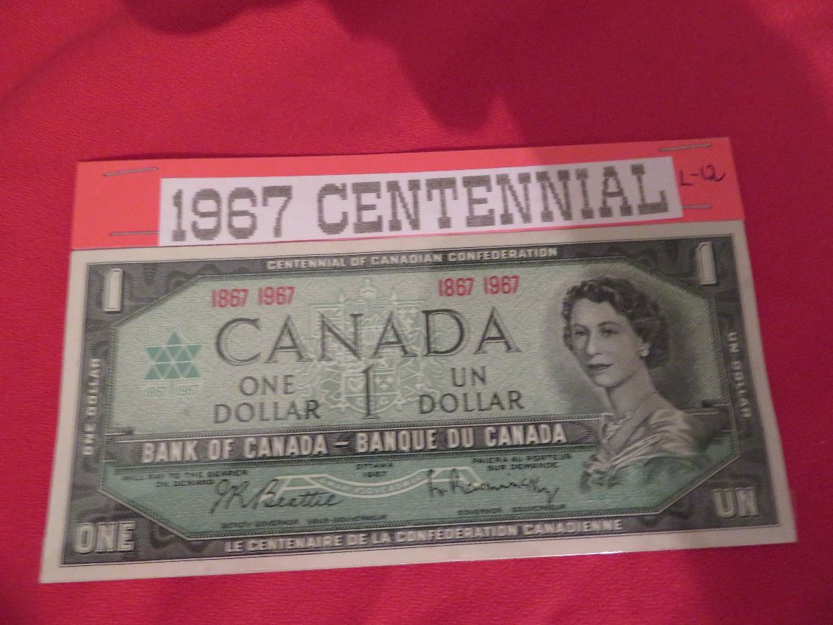 1967 $1.00 banknote centennial year unc.