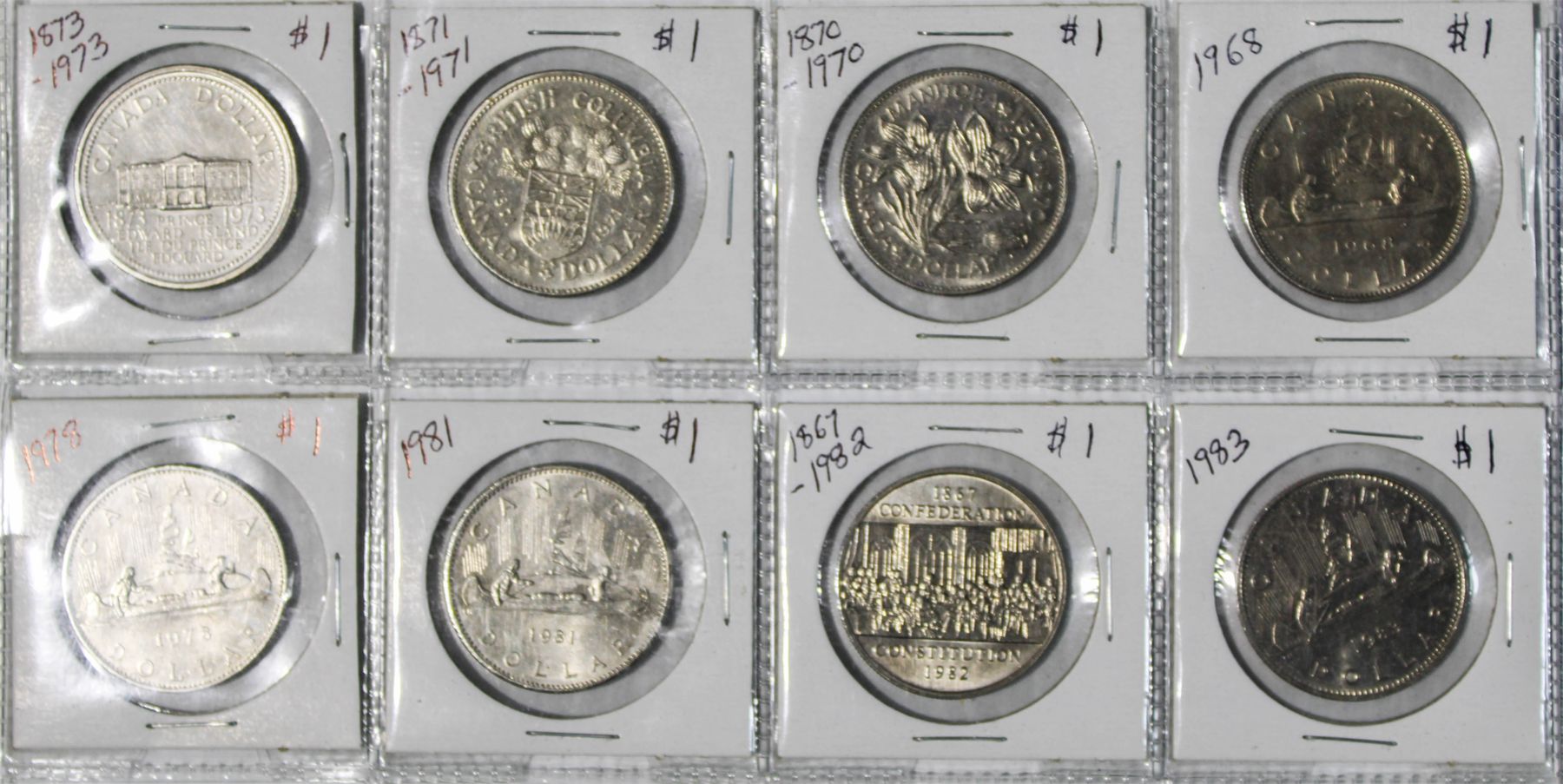1968, 1970, 1971, 1973, 1978, 1981, 1982, 1983 1 DOLLAR COINS