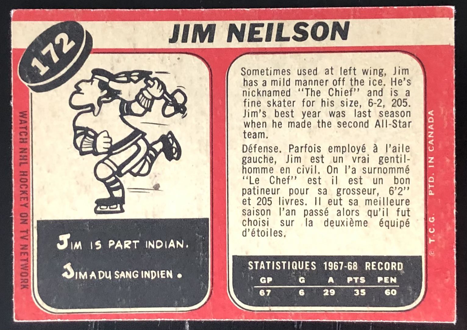 Card #172 vintage, NHL, hockey, OPC