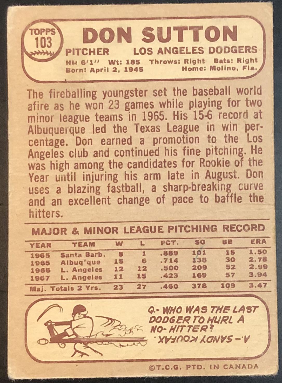 1968 O-PEE-CHEE DON SUTTON (HOF)