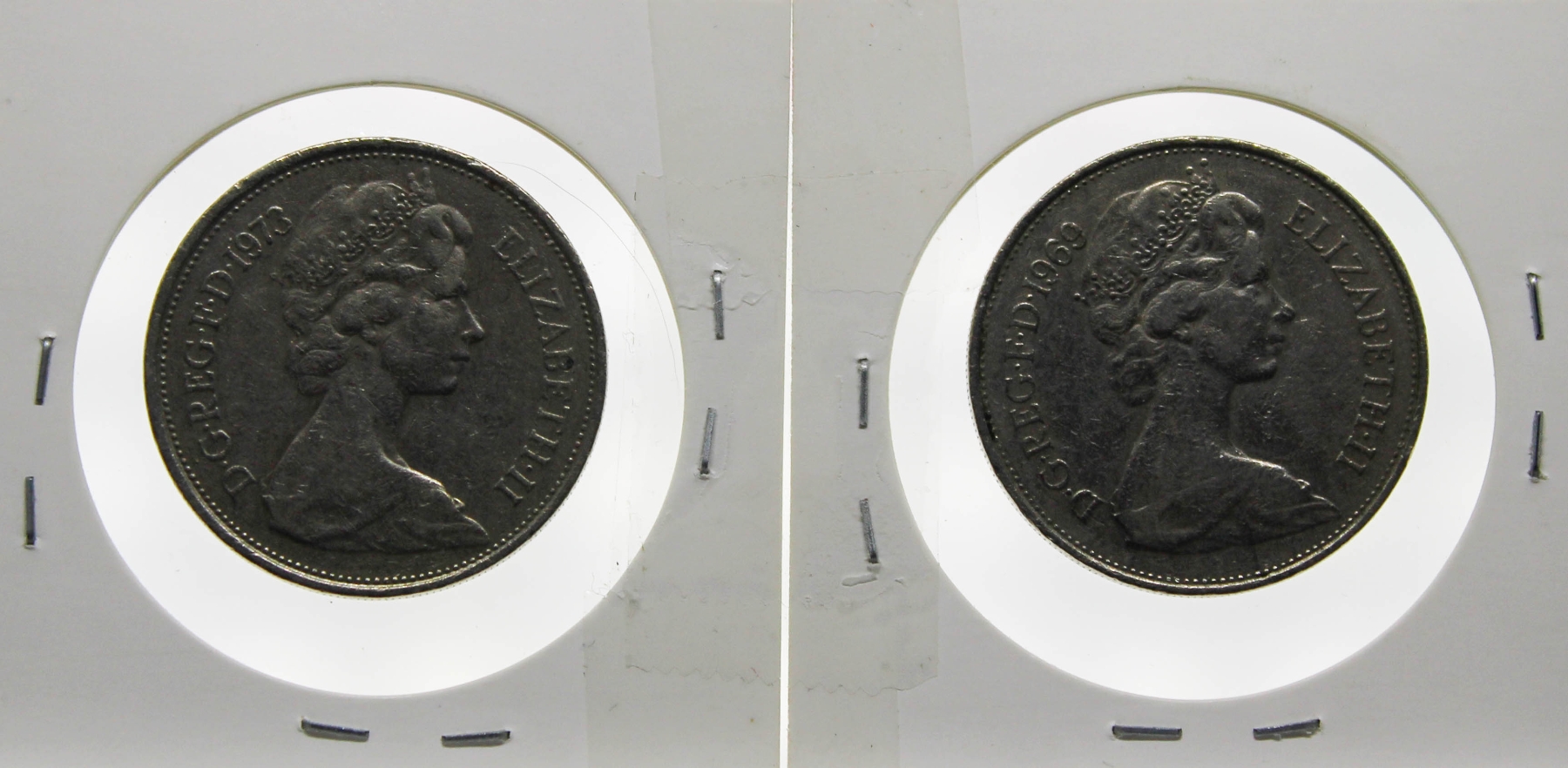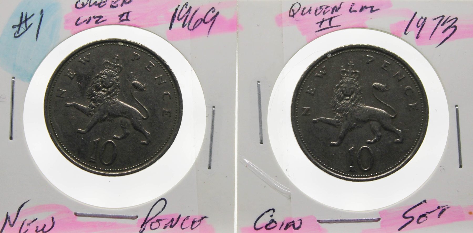 1969 & 1973 QUEEN LIZ II NEW PENCE 10 COINS