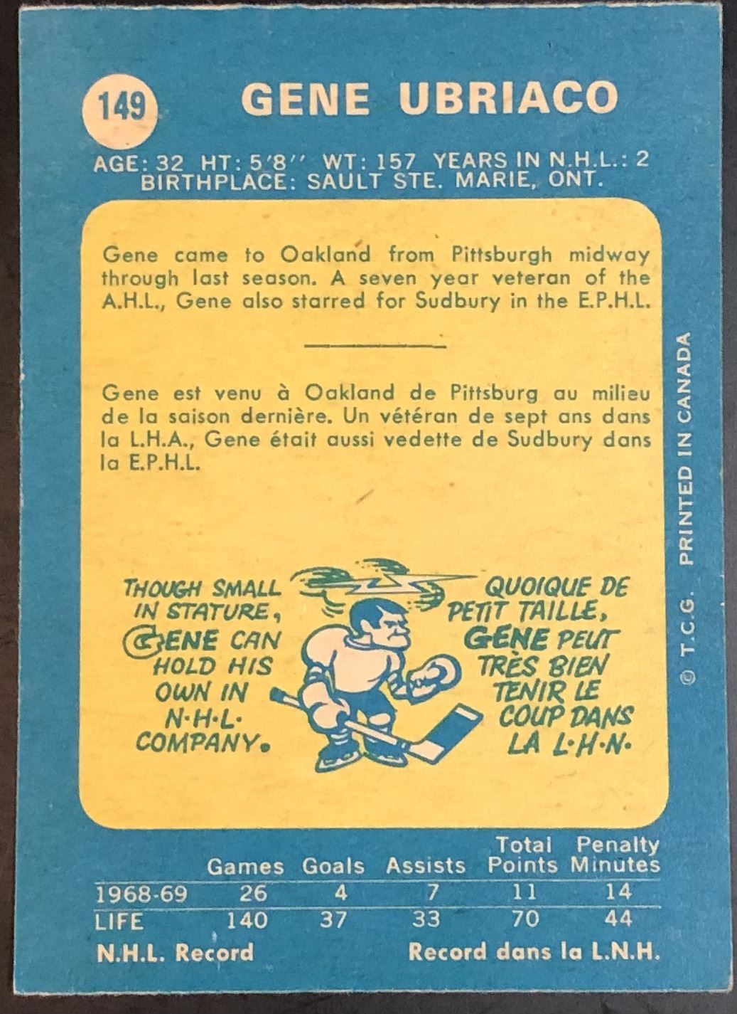 Card #149 hockey, OPC, vintage