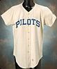 On the front left tail is the "Wilson" manufacturer's tag with wash instructions, and size "42." Across the front of the jersey is "PILOTS." On the back of the jersey is player number "14." All lettering and numbering is done in royal blue tackle twill. On the left sleeve is the MLB "100th ANNIVERSARY" patch. The jersey shows game-use and appears to have no alterations of any kind.