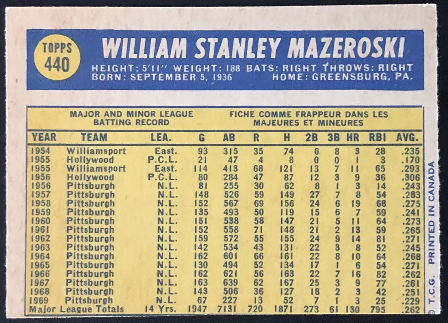 Card #440 MLB baseball, hall of fame, vintage, OPC