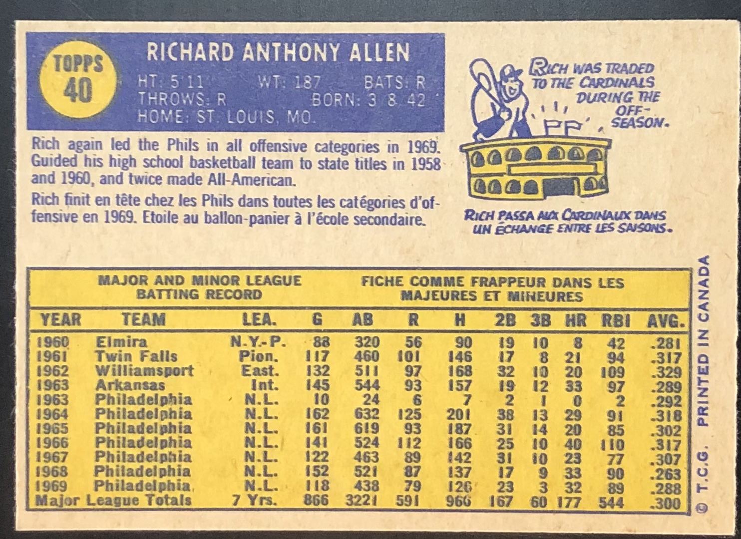 Card #40 MLB, baseball, vintage, OPC, hall of fame