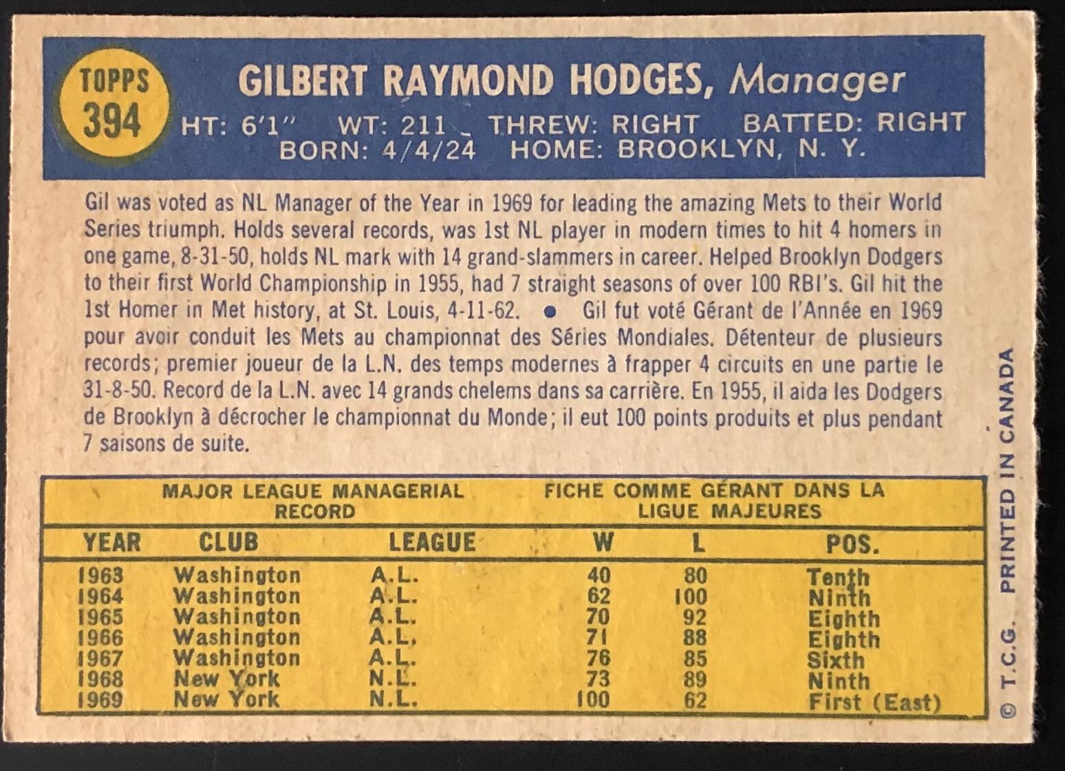 Card #394 MLB, baseball, vintage, OPC, hall of fame