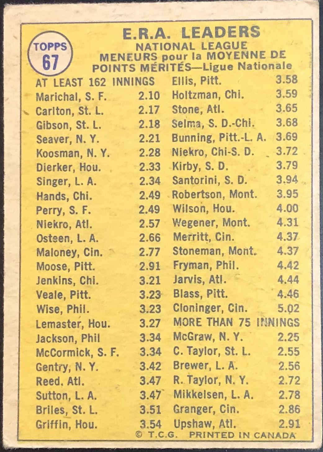 Card #67 MLB, baseball, vintage, OPC, hall of fame