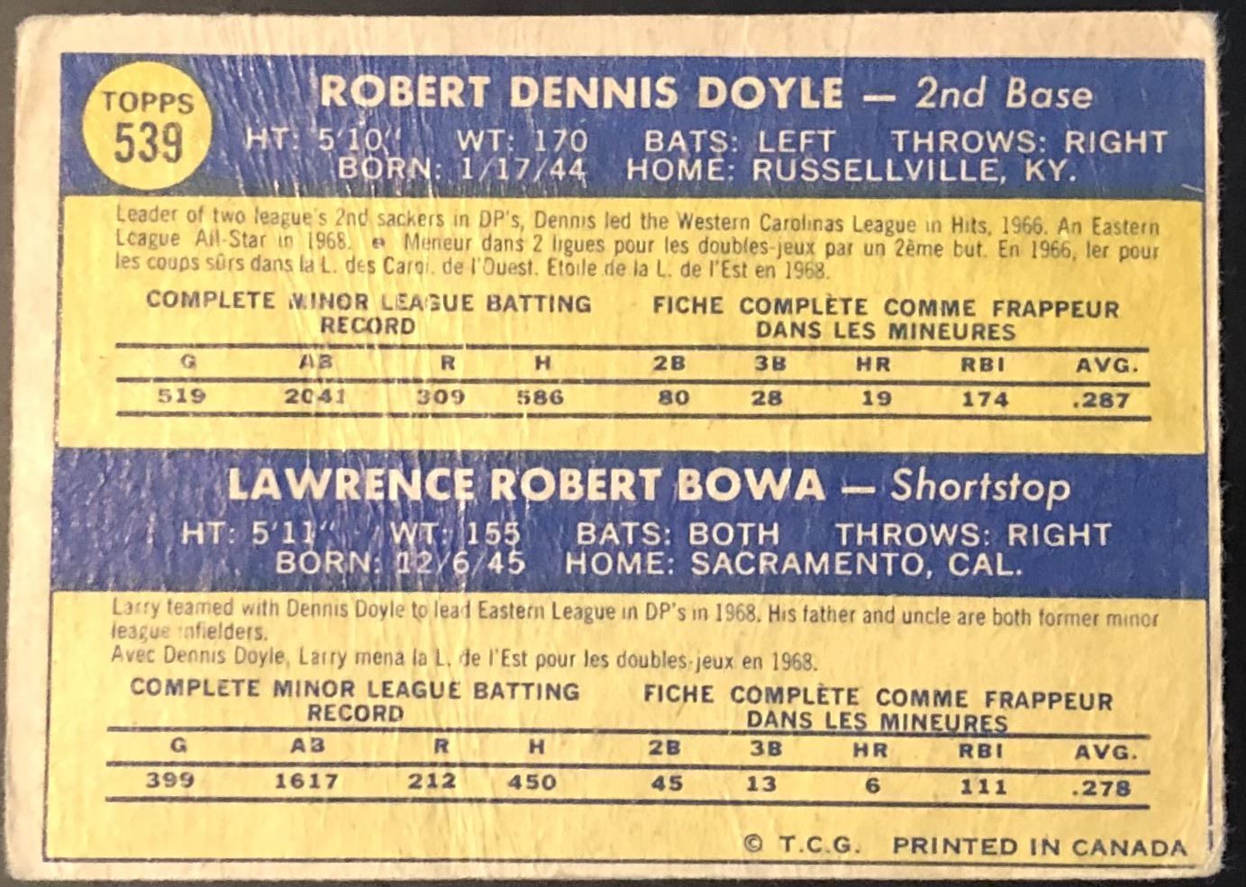 Card #539 filler quality (soft corners, creasing) vintage, MLB, baseball, rookie, OPC