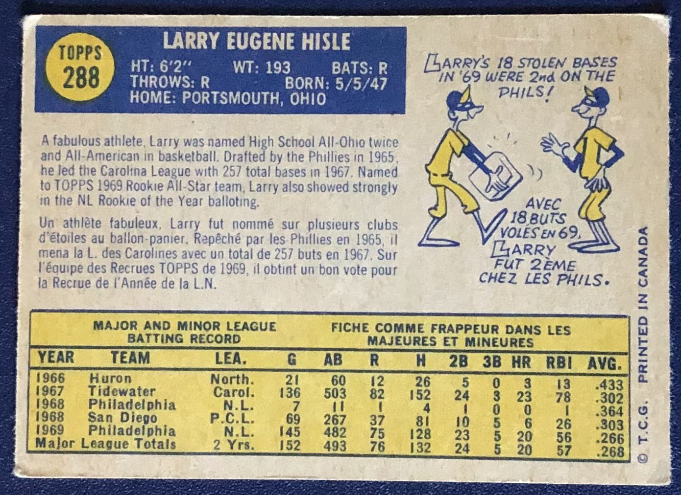 Card #288 vintage, MLB, baseball, rookie, OPC
