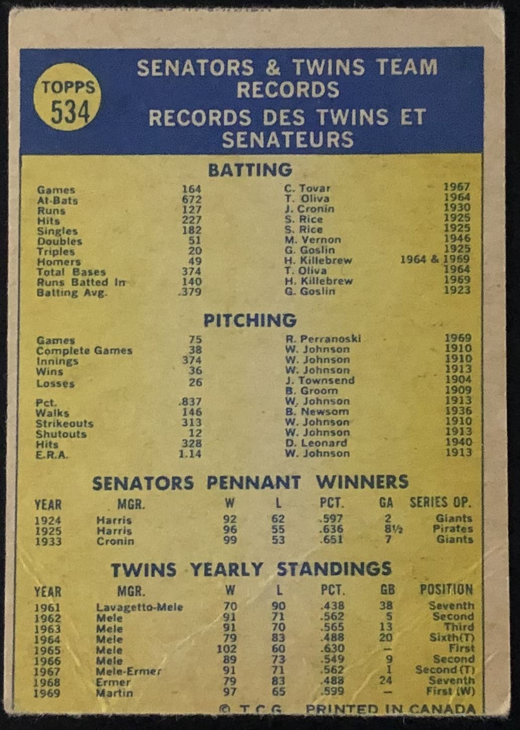 Card #534 filler quality (soft corners, creasing) vintage, MLB, baseball, OPC