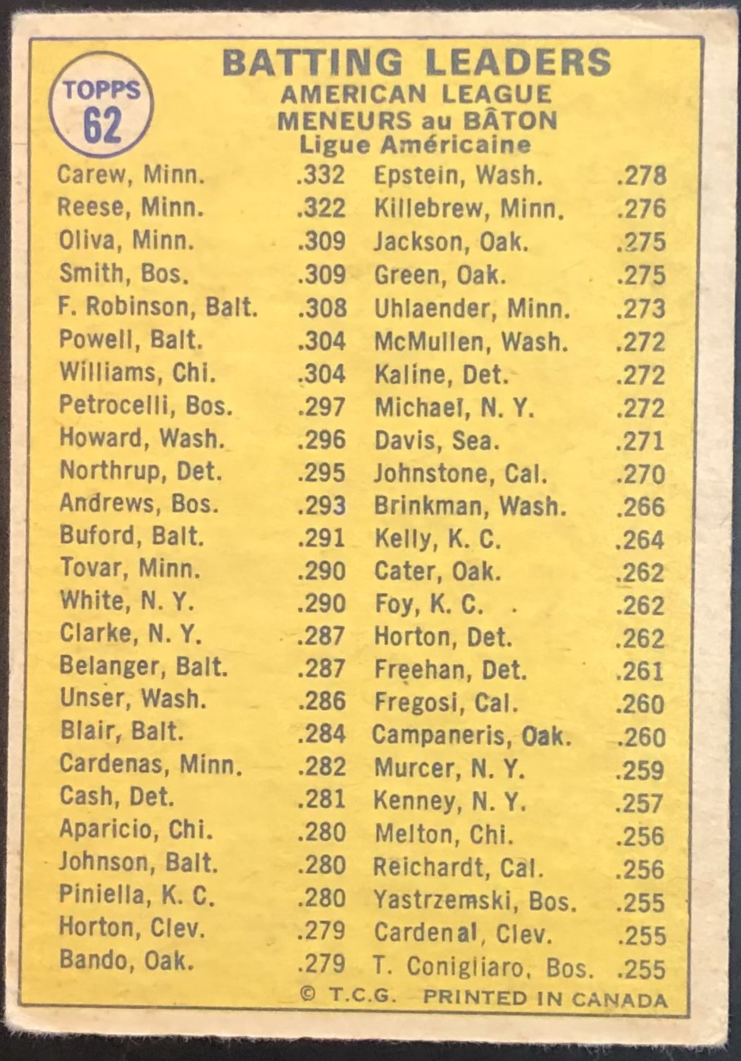 Card #62 MLB, baseball, vintage, OPC, hall of fame