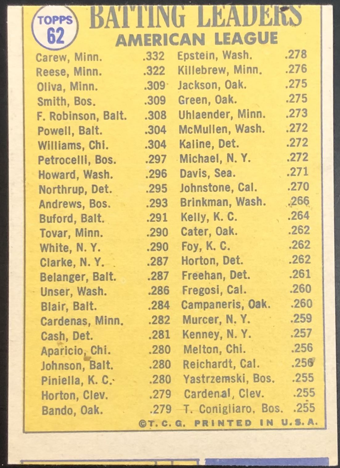 Card #62 OPC, vintage, MLB, baseball, hall of fame