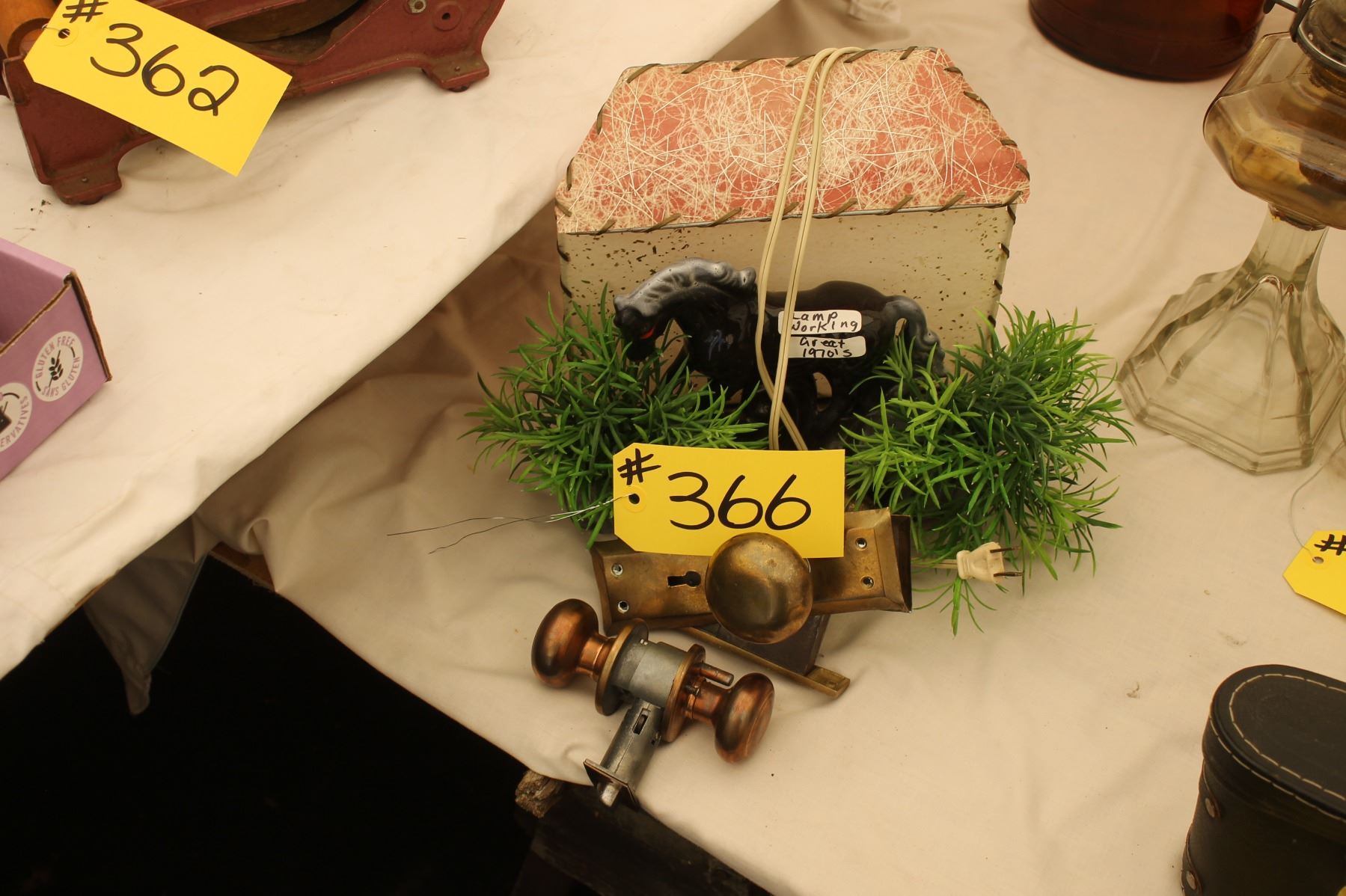 1970'S HORSE LAMP,WORKING,2 - BRASS DOOR KNOB SETS
