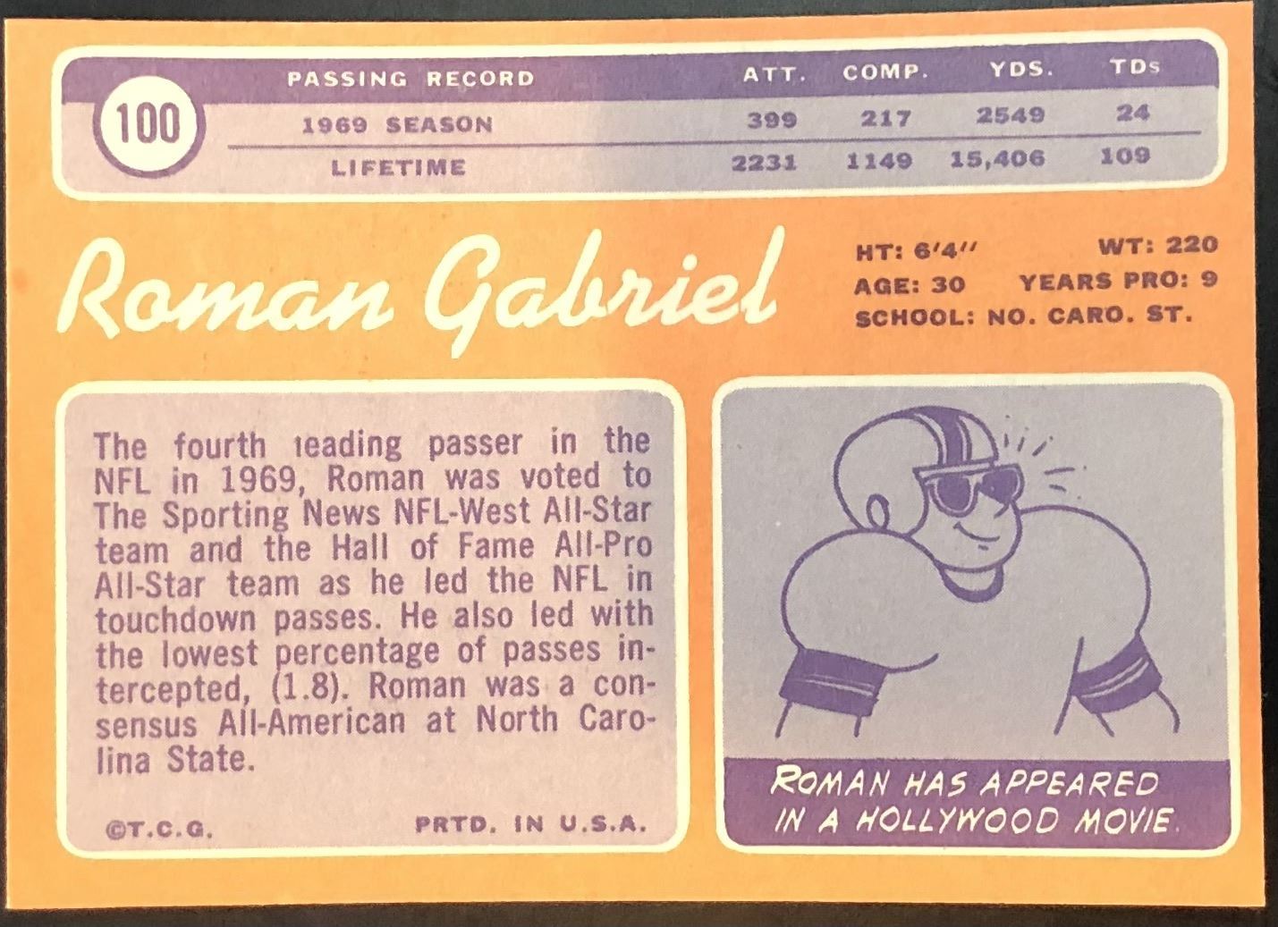Card #100 football, vintage, hall of fame