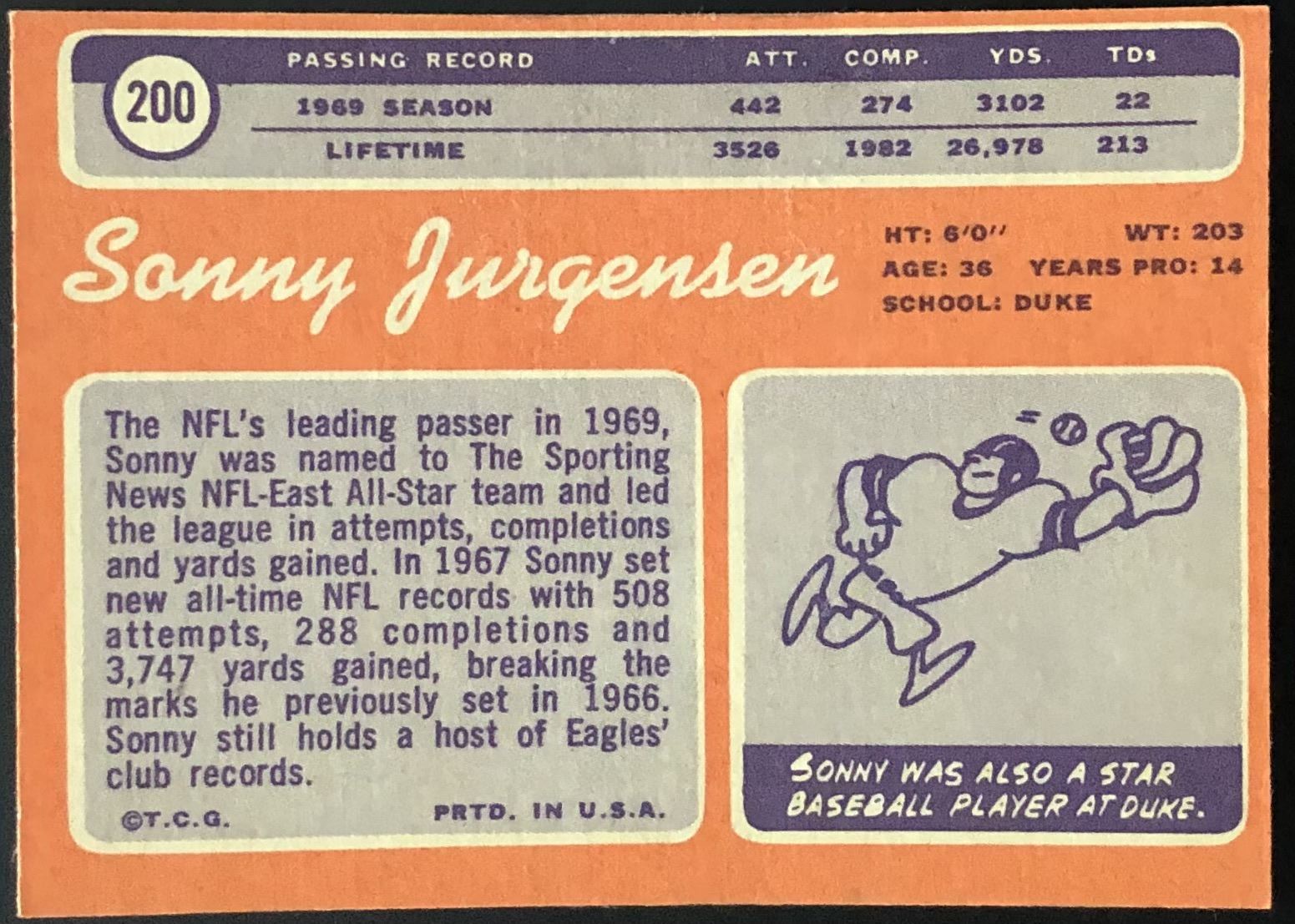 Card #200 vintage, NFL, football, hall of fame